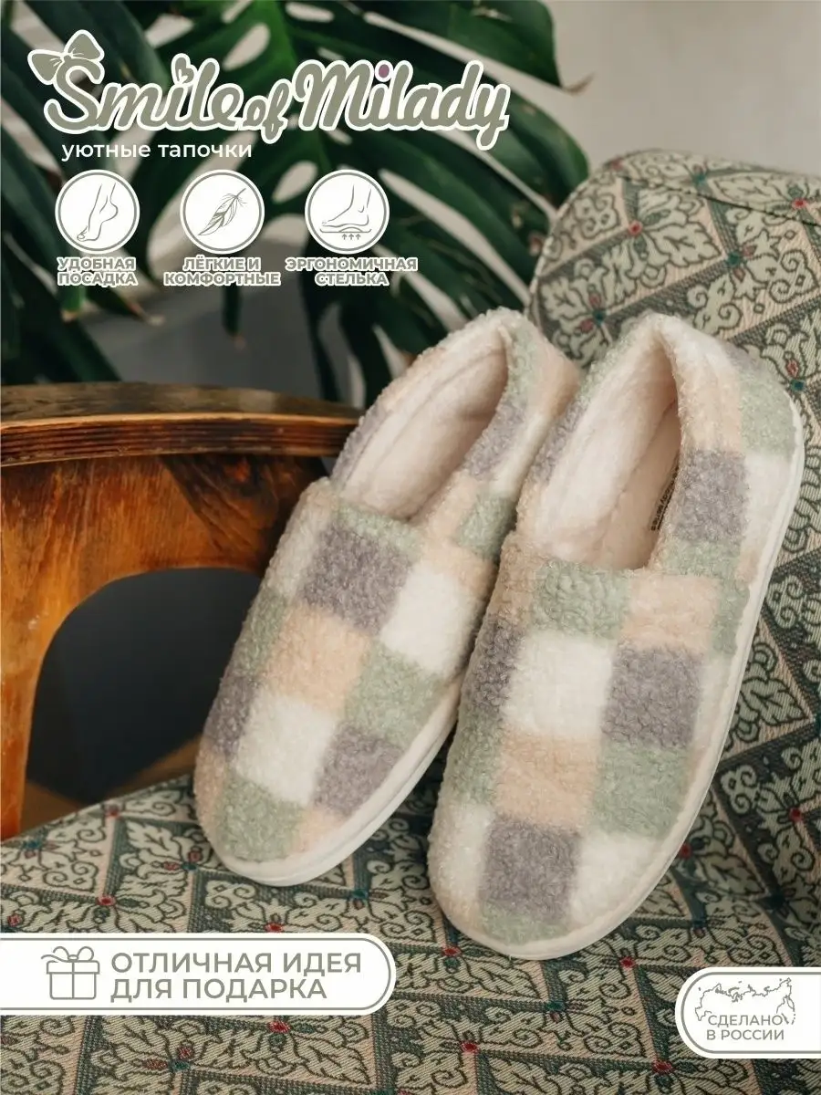 Уважаемый покупатель, представляем вам милые домашние тапочки бренда Smile of Milady от российского производителя с 17-летним опытом - АО «РПТ». Тапочки домашние женские Smile of Milady – модные и милые чуни для женщин, которые позволят вам всегда чувствовать себя комфортно и уютно. Сочетание высокого качества материала и удобства носки делает эти тапки идеальным выбором для всех девушек. Ценители комфорта и моды оценят эти тапочки из серии угги, не уступающие в качестве и дизайну тапочкам UGGЧуни Smile of Milady изготовлены из искусственного мягкого меха на платформе и обеспечивают невероятное тепло в зимнее время и защиту от холода. Они поддерживают приятную температуру ног в холодные дни и делают ваш отдых в домашней обстановке еще более расслабляющим. Данная модель подходит для домашнего использования и обладает прочной высокой подошвой. Наши тапочки могут стать прекрасным подарком к 8 марта - символу весны и женственности. Они также подходят для различных событий, будь то новоселье, день рождения или просто внимание к вашим близким. Покупайте свою пару теплых и милых домашних тапочек уже сегодня! Создайте уют и комфорт для себя и своих гостей. Будьте оригинальными с нашими уникальными тапками! Добавляйте наш бренд в "Любимые" и следите за нашими акциями и обновлениями.