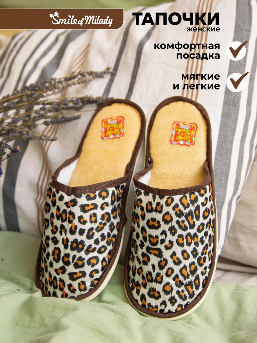 Представляем вам уютные и милые тапочки домашние женские Smile of Milady, которые станут вашим надежным спутником в доме и на даче, а также в роддоме. У нас вы найдете тапочки на любой сезон: теплые меховые женские модели, легкие летние варианты, из натуральной или экологически чистой кожи, текстиля, резиновые или сшитые из искусственных материалов – все, что нужно для вашего уюта дома.Закрытые комнатные тапочки – это идеальное решение для любого вида отдыха и работы. Классический крой, отсутствие молний и лишнего декора, лаконичные цвета и разнообразие размеров делают их универсальными для каждого, независимо от возраста и пола. Благодаря своей удобной и ортопедической конструкции, эти тапки подходят как для женщин, так и для подростков и бабушек. И самое лучшее – подошва из экологически чистого материала ЭВА (EVA) не скользит, обеспечивает ортопедический и массажный эффект, уменьшая усталость ног даже после долгого стояния.Наши мягкие тапочки с закрытым носом настолько превосходны, что переплюнут известные бренды по характеристикам, практичности и носкости. Они подходят не только для дома, но и идеально заменяют рабочую обувь, когда приходится много находиться на ногах. Также их можно использовать как сменную обувь для офиса. Их широкий размерный ряд и универсальная полнота позволяют использовать их в гостиницах, больницах, в командировках и в гостях, носить как на узкой, так и на широкой стопе. А наличие парных моделей сделает их отличным подарком для ваших близких на любой праздник: 8 марта, Новый год, день рождения, бабушке, маме или любимой.Современные тапки 2023 года – это не просто обувь, это стиль, модные тенденции и удобство, которое вы не захотите снимать ни зимой, ни летом. Их производство происходит в России по высочайшим стандартам, подтвержденным необходимыми сертификатами качества и декларациями соответствия. Так что, несомненно, это правильный выбор для заботы о своих ногах.