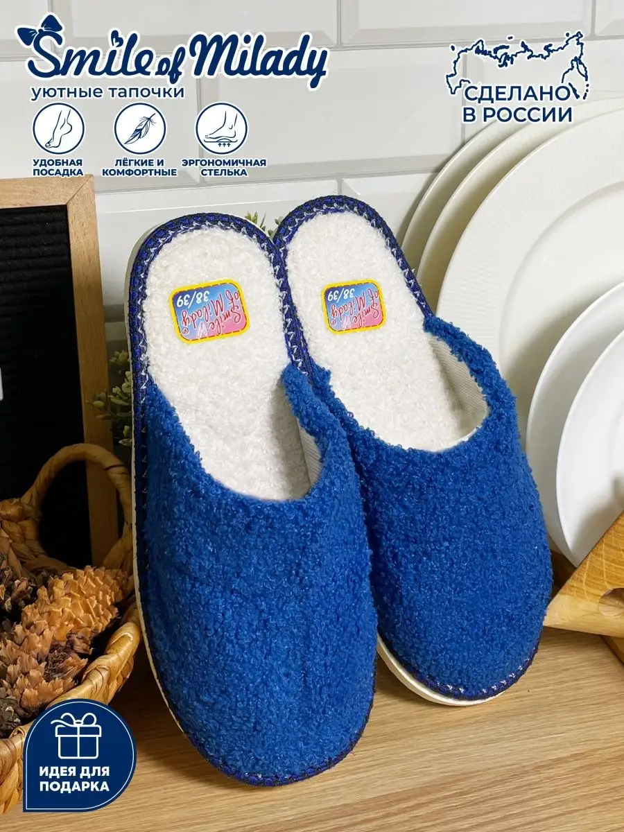 Представляем вам уютные и милые тапочки домашние женские Smile of Milady, которые станут вашим надежным спутником в доме и на даче, а также в роддоме. У нас вы найдете тапочки на любой сезон: теплые меховые женские модели, легкие летние варианты, из натуральной или экологически чистой кожи, текстиля, резиновые или сшитые из искусственных материалов – все, что нужно для вашего уюта дома.Закрытые комнатные тапочки – это идеальное решение для любого вида отдыха и работы. Классический крой, отсутствие молний и лишнего декора, лаконичные цвета и разнообразие размеров делают их универсальными для каждого, независимо от возраста и пола. Благодаря своей удобной и ортопедической конструкции, эти тапки подходят как для женщин, так и для подростков и бабушек. И самое лучшее – подошва из экологически чистого материала ЭВА (EVA) не скользит, обеспечивает ортопедический и массажный эффект, уменьшая усталость ног даже после долгого стояния.Наши мягкие тапочки с закрытым носом настолько превосходны, что переплюнут известные бренды по характеристикам, практичности и носкости. Они подходят не только для дома, но и идеально заменяют рабочую обувь, когда приходится много находиться на ногах. Также их можно использовать как сменную обувь для офиса. Их широкий размерный ряд и универсальная полнота позволяют использовать их в гостиницах, больницах, в командировках и в гостях, носить как на узкой, так и на широкой стопе. А наличие парных моделей сделает их отличным подарком для ваших близких на любой праздник: 8 марта, Новый год, день рождения, бабушке, маме или любимой.Современные тапки 2023 года – это не просто обувь, это стиль, модные тенденции и удобство, которое вы не захотите снимать ни зимой, ни летом. Их производство происходит в России по высочайшим стандартам, подтвержденным необходимыми сертификатами качества и декларациями соответствия. Так что, несомненно, это правильный выбор для заботы о своих ногах.