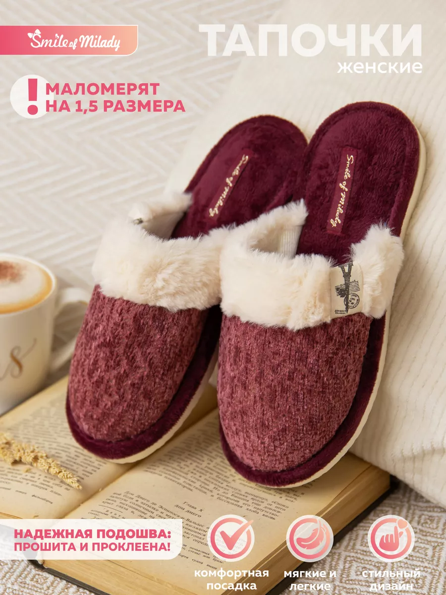 Внимание! Эта модель маломерит, смотрите таблицу размеров. Уважаемый покупатель, представляем вам милые домашние тапочки бренда Smile of Milady от российского производителя с 17-летним опытом - АО «РПТ». Ощущение уюта и комфорта – вот что подарят вам эти милые тапочки домашние женские. Они идеально подойдут для любого времени года, особенно для зимы, благодаря своему теплому и пушистому меху. Невероятно мягкие и ортопедические, эти тапки созданы для вашего комфорта и отдыха дома или на даче. Могут стать прекрасным подарком для вашей сестры, подруги или любимой девушки. Модель тапочек дарит ощущение массажа ног и одновременно сохраняет тепло, поэтому они подойдут даже в самые холодные дни. Их плюшевая меховая отделка и оригинальный дизайн сделают ваш образ уютным, а вы почувствуете себя настоящей королевой семьи. Теплые и удобные чуни домашние женские подарят незабываемое удовольствие после долгого рабочего дня и принесут радость в вашу жизнь. Анатомическая модель обеспечит правильное положение стопы, а мягкая обеспечит комфорт во время носки. Наши тапочки домашние женские не только обеспечивают максимальный комфорт и уют, но и обладают рядом преимуществ, включая мягкий экомех, резиновую нескользящую подошву EVA для гибкости и износостойкости. Они просты в уходе, дышащие, идеально подходят для любого сезона - от зимы до лета. Открытый носок делает их приятными к коже, создавая уют и комфорт для ваших ног. Наши тапочки могут стать прекрасным подарком к 8 марта - символу весны и женственности. Они также подходят для различных событий, будь то новоселье, день рождения или просто внимание к вашим близким. Покупайте свою пару теплых и милых домашних тапочек уже сегодня! Создайте уют и комфорт для себя и своих гостей. Будьте оригинальными с нашими уникальными тапками! Добавляйте наш бренд в "Любимые" и следите за нашими акциями и обновлениями.