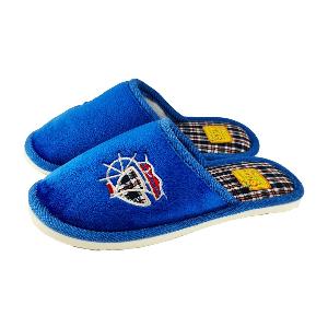 Текстильный верх тапочек, украшен вышивкой в форме корабля.