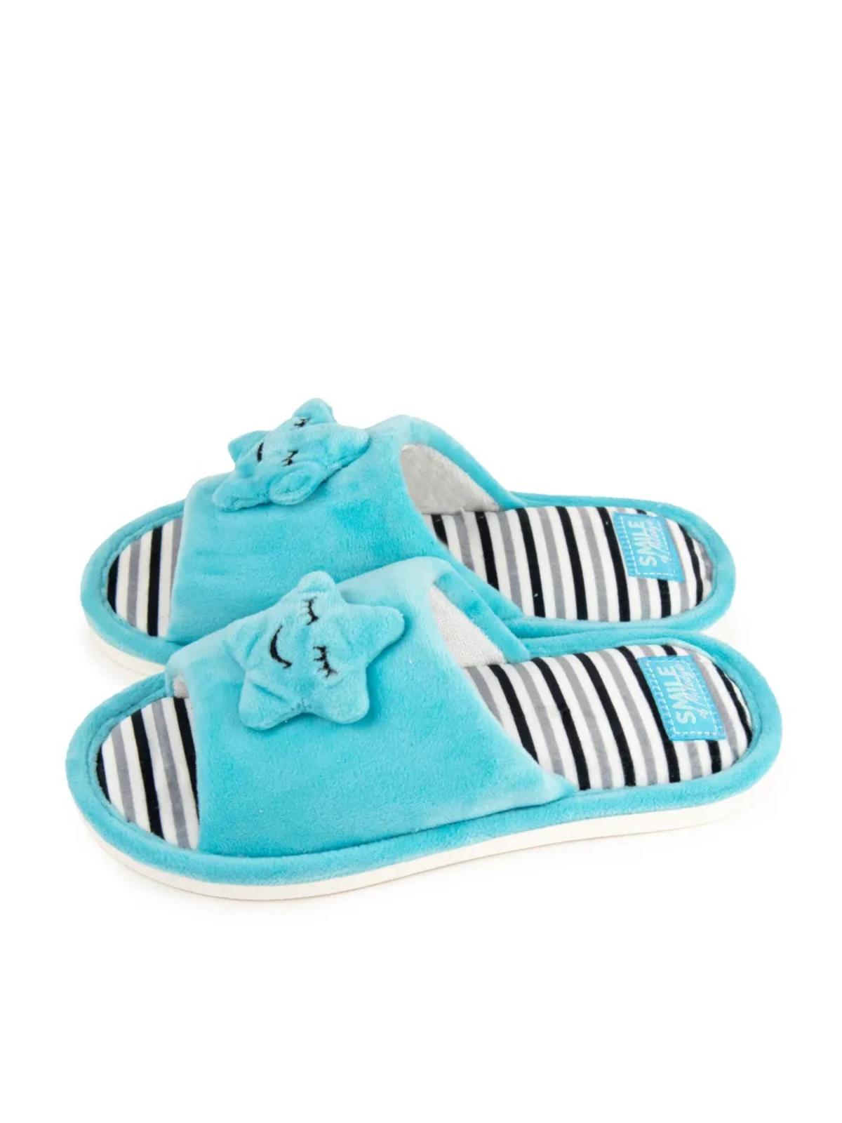 Верх тапочек сшит из приятного на ощупь велюра, который, декорирован объемными спящими звёздочками, из того же материала.